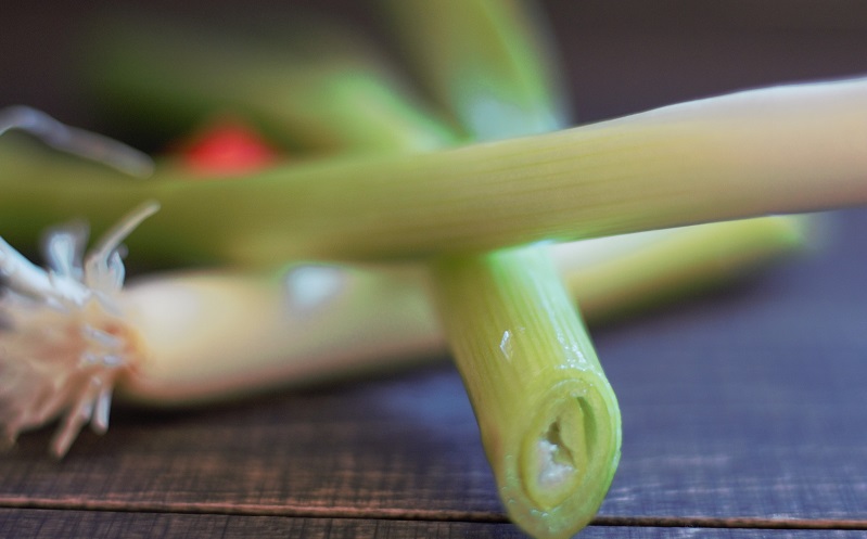 In der Zwischenzeit das restliche Kokosöl in eine große Pfanne und die Lauchzwiebelringe darin anbraten.